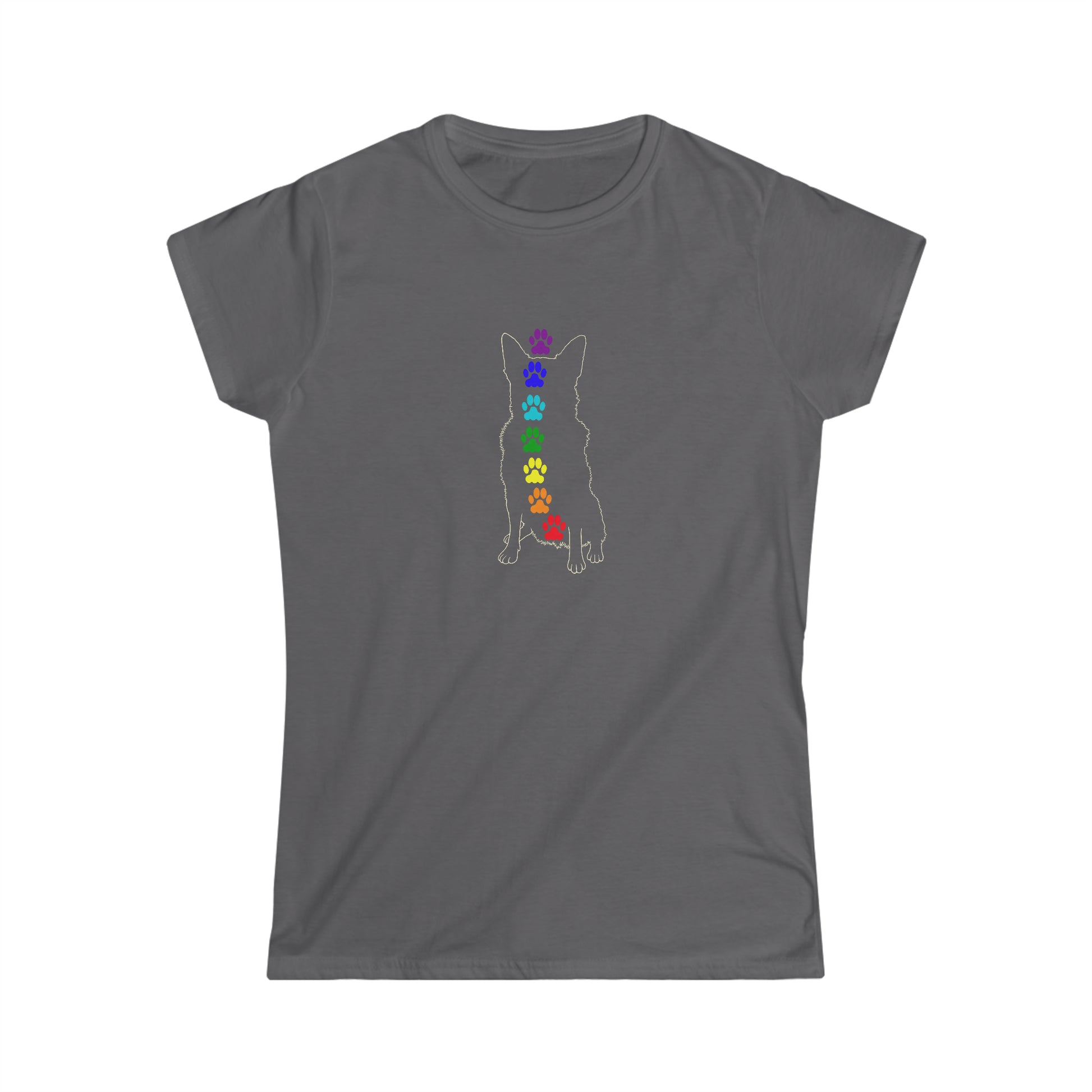 All bodies have 7 different energy centers connected to various parts of all bodies. These seven energy centers are called chakras and they affect the physical, emotional, and spiritual selves. A chakra is a spinning whirlpool drawing in anything it finds matching it's vibrational energy. These chakras also give off their own energy of vibration. Connect with and tune in to your Cattle Dog on an energetic level with our Chakra Australian Cattle Dog gear! This soft jersey tee is comfortable enough to wear all day long.